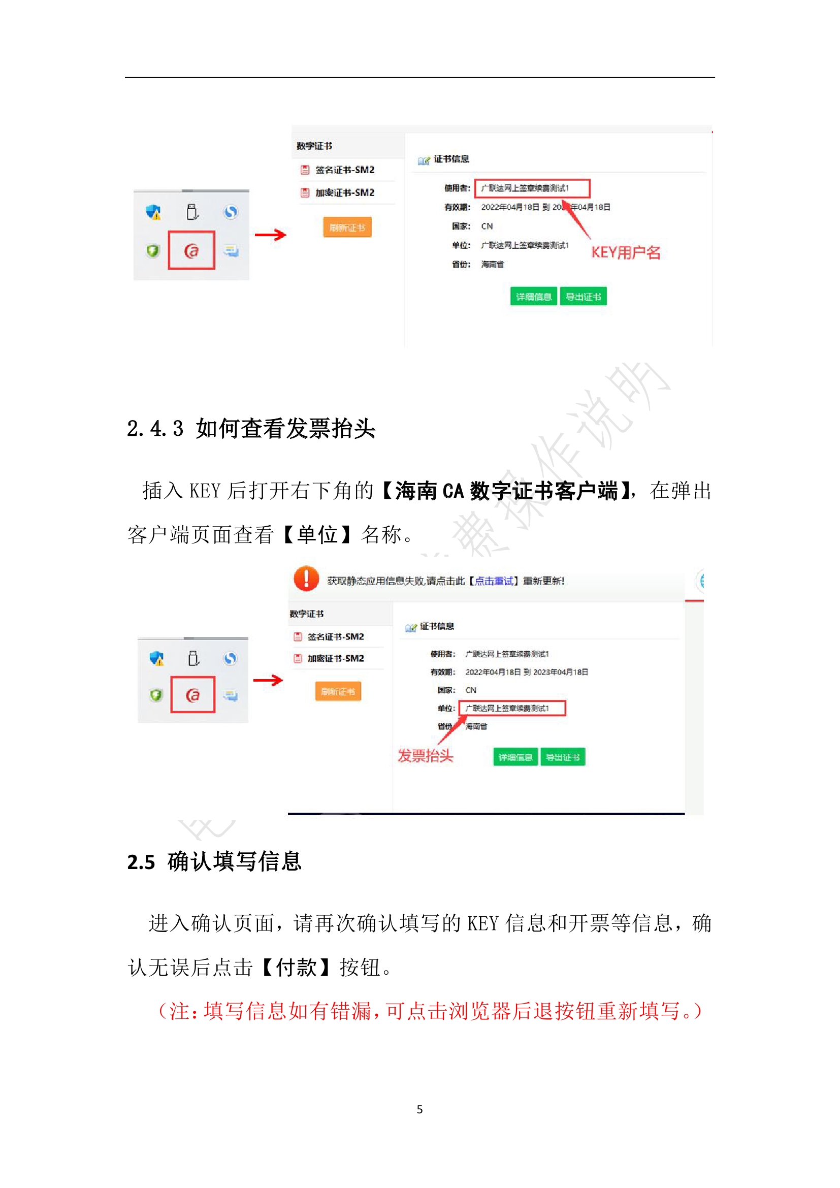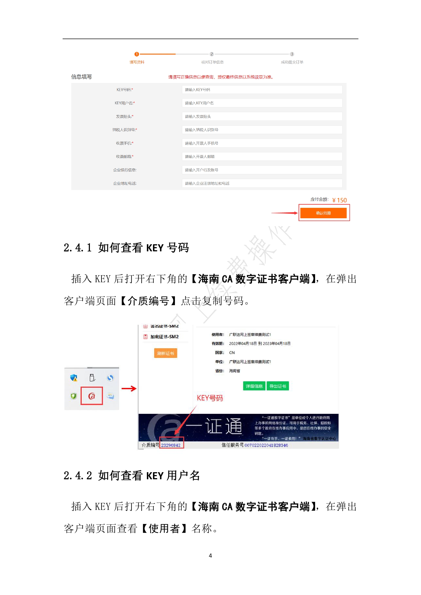 1、插入KEY并确保【海南CA数字证书客户端】识别到信息